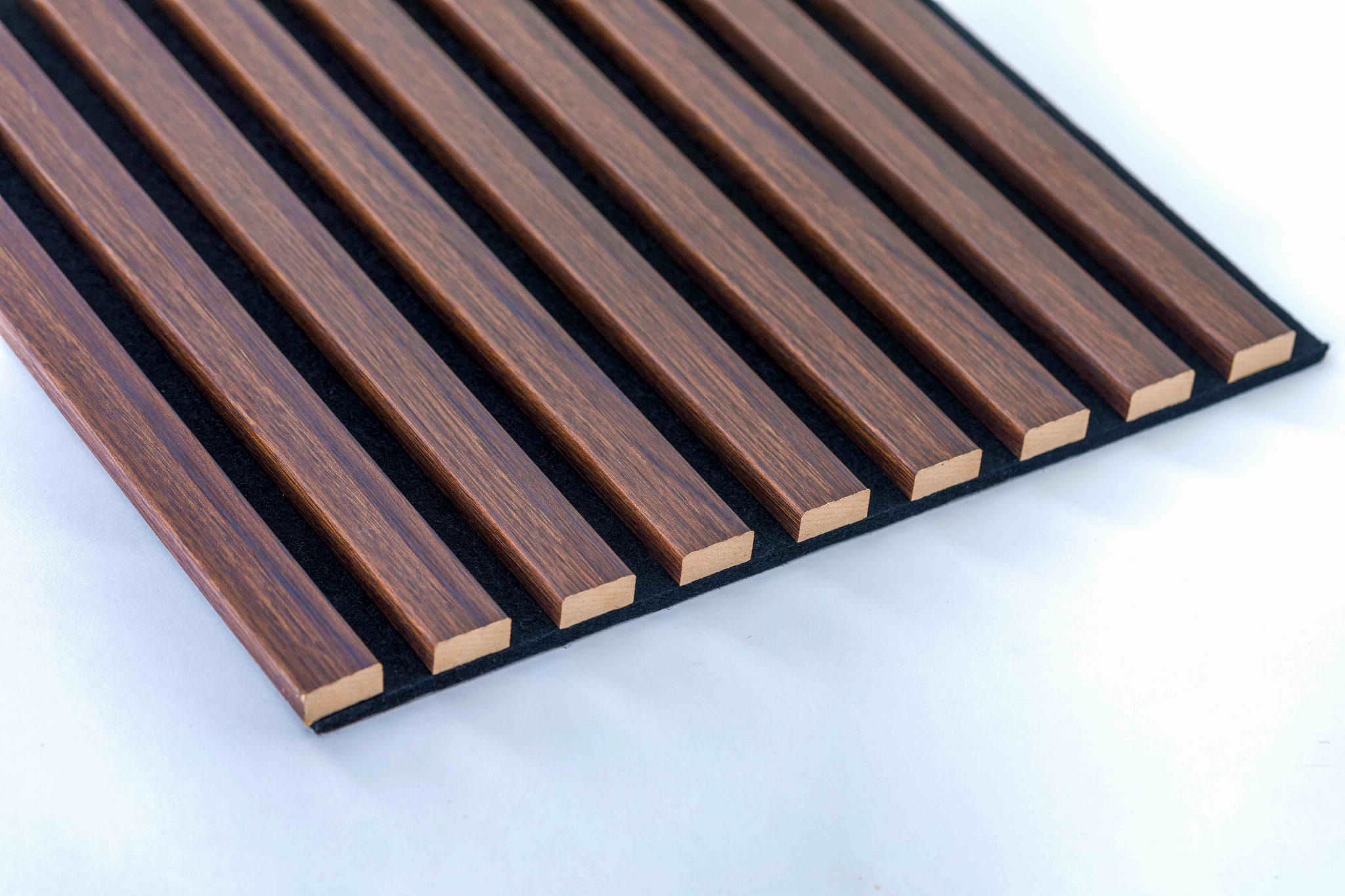 Realne zdjęcia lameli na filcu akustycznym w kolorze ciemnego dębu